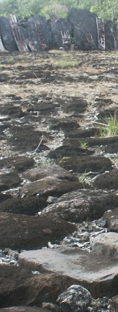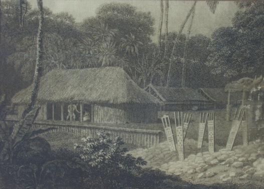Agora, os Morai's foram postos ao chão; em todos os pontos do arquipélago encontram-se as ruínas dos mesmos, nos vales internos, ao lado dos povoados, nas colinas e nas gargantas das montanhas. As árvores que nasciam nas suas proximidades eram sagradas, em geral eram casuarinas, com as suas copas de melancólicas folhas, calofilas, tespesias e cordias, intranspassáveis ao sol." (pág. 466)