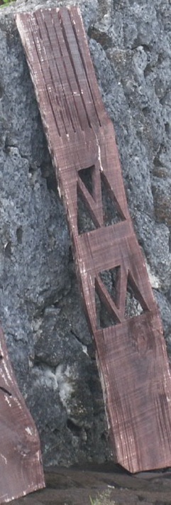Ao alto da prancha colova-se uma figura indivual e humana, um galo, um navio ou uma cão. As pranchas mais complexas eram pintadas com motivos geométricos coloridos. Uma forma simples era aquela em forma de garfo ou conservando a forma da árvore original. Os unu sem decoração eram aqueles que marcavam locais de sacrifícios humanos, sendo elevados entre os crâneos das vítimas.