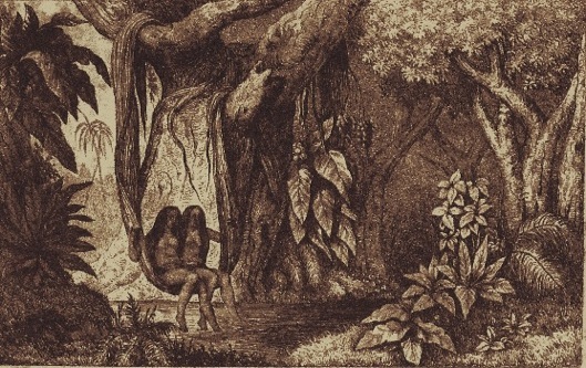 Num desses hortos, Bougainville foi convidado por um taitiano hospitaliero de dividir com êle o seu assento na grama. O taitiano a êle dirigiu, assim como a seus companheiros, palavras cheias de ternura, que se faziam ainda mais emotivas pelos seus gestos. Logo cantou, tocou a sua flauta, e o seu canto tinha sem dúvida poderoso atrativo, pois o famoso viajante aclamou: "essa cena magnífica é digna do pincel de um Bouchers!" (op.cit. 415)