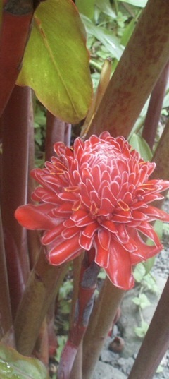 Ao lado de prados, que irradiam com as flores mais magníficas, ao lado das águas das lagunas, que as árvores de forma de pirâmides sombreiam através de filas de coqueiros, que balançam as suas coroas nos ares, e florestas de árvores da fruta pão, que se espraem como chapéus de sol, correm riachos, caindo de alturas vulcânicas, murmurando sobre leitos de basalto negro; cipós longos, enfeitados de flores criam pontes naturais entre as suas margens, emolduradas por heliconias púrpuras; abismos estarrecidos por grandes samambaias espinhentas, são ensombreadas pela rosa da China e pela agradável Gardenia. Aqui o viajante contempla numa bela manhã ao brilho do sol tropical o mar, que se levanta às vezes como uma boa ameaçadora, às vezes com o rúido do trovão; alí admira êle uma ruidosa cascata, como se levanta em montanhas espumantes e cai, novamente sobe e novamente cai. Essa maravilha de natureza grande e imposante inebria a sua imaginação; a noite o encontra ainda embevecido nesses lugares; um pensamento grande toma dele conta, e pergunta se tudo o que o envolve, se esse novo mundo é uma nova Criação dos vulcões ou se saiu das ruínas de um antigo mundo.