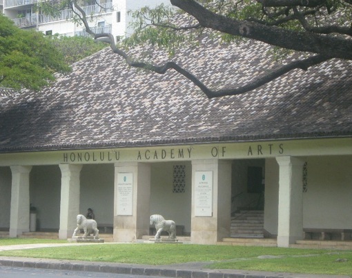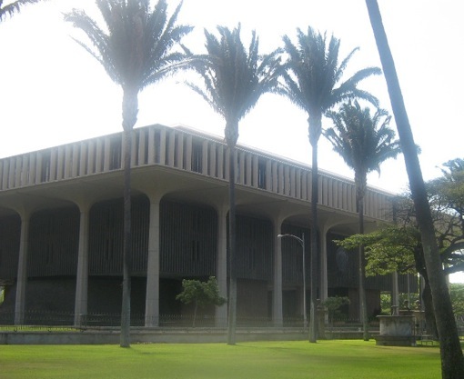 Honolulu (Biblioteca:cabeçalho e coluna 1; Arquivo: coluna 2; Museu Bernice Bishop: coluna 3-4-5 e duas imagens no texto; Academia de artes e Centro da Academia: texto; Monumento de Punchbowl: texto; State Capitol: texto; Monumento aos nativos: texto )