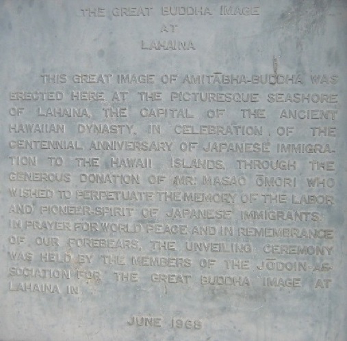 Grande imagem de Buda de Lahaina (coluna e texto)