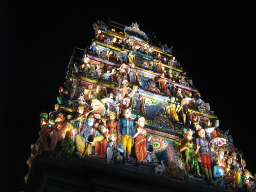 Ali foram localizados os primeiros edifícios religiosos para os chineses e indianos muçulmanos. Pela falta, porém, de uma fonte de água corrente, necessária para os rituais da tradição hindú, William Farquhar determinou uma área próxima ao Stamford Canal, em 1821, substituída, em 1823, por um local próximo ao atual, na South Bridge Road ou Pagoda Street/Temple Street, na região do distrito chinês de Singapura.