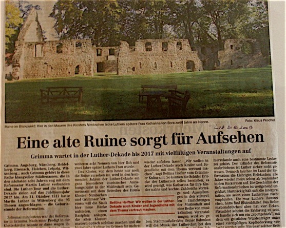 Para a reflexão sobre essas questões, o ISMPS escolheu um dos locais principalmente envolvidos nas programações dessa década, o convento, hoje em ruínas, de Nimbschen, em Grimma. (Veja https://revista.brasil-europa.eu/127/Grimma-Theodor-Uhlig.html)