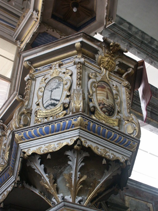 O emprêgo das alegorias em imagens e em palavras, assim como a especificação verbal de significados representados visualmente demonstram diferenças de concepções em confrontos com a próxima igreja católica do convento medieval de Wechselburg.