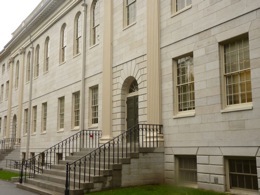 Das suas edificações, o Massachusetts Hall, que abriga os escritórios do presidente da universidade, merece ser particularmente salientado sob o aspecto histórico, uma vez que foi construído em 1720.