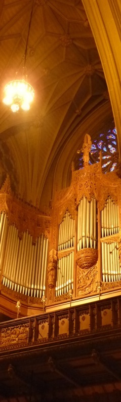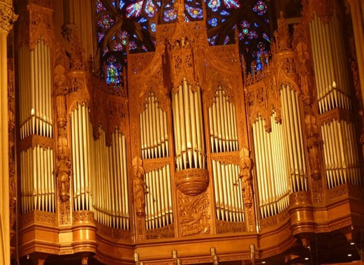 Sob o aspecto musical, a Catedral e St. Patrick salienta-se pelos seus órgãos: o Grand Gallery Orgel, à entrada, com o órgão da nave, eco, e o órgão no espaço do altar, o Chancel Organ. Ambos os órgãos podem ser tocados independentemente ou em conjunto a partir dos respectivos teclados, de 5 manuais. Apresentam, no total, 9838 tubos e 177 registros. Já em 1879 instalou-se um órgão mecânico, com quatro manuais e 51 registros, de George Jardine & Son, de Nova York. No altar, instalou-se em 1880 um órgão com 2 manuais e 20 registros da Fa. J.H. & C.S. Odel, também de Nova York. O órgão do altar foi substituido pelo atual em 1928, o da tribuna em 1930, ambos da firma George Kilgen & Son, de St. Louis, Missouri.