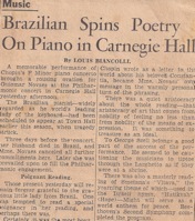 Bispo, A.A.."The most beautiful rendering of the Chopin classic heard in New York. A mulher nas relações culturais Brasil/Estados Unidos V. Memento no Carnegie Hall ao homem que permaneceu obscurecido: