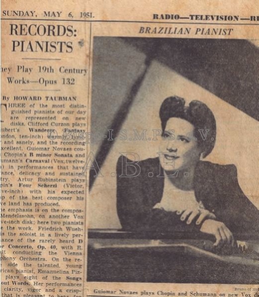 O The New York Times, de 6 de maio, considera essa gravação em resenha de Hyman Howard Taubman, ilustrada com uma fotografia da pianista brasileira. O crítico, ainda que não tendo a formação especializada dos anteriores, era musicógrafo destacado, publicando, naquele ano de 1951 a sua biografia de A. Toscanini (The Maestro, 1951). Seria, alguns anos mais tarde, chefe-redator de música e de teatro do The New York Times.