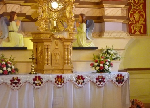 Canto de horas e adoração da cruz dos nativos e o culto a santos dos portugueses