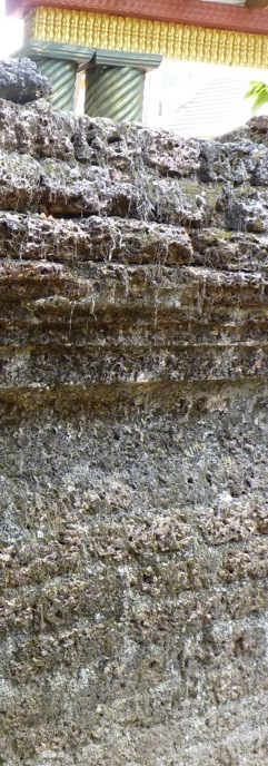 Entre essa piscina e a capela conservam-se restos de muros do antigo templo não-cristão. Um fragmento de coluna, com uma cruz denotando a transformação cristã ou o batismo da antiga construção, encontra-se à frente da entrada da capela. Esta é continuamente visitada por fiéis que, de forma compenetrada e silenciosa, mantém perene veneração do Santíssimo.