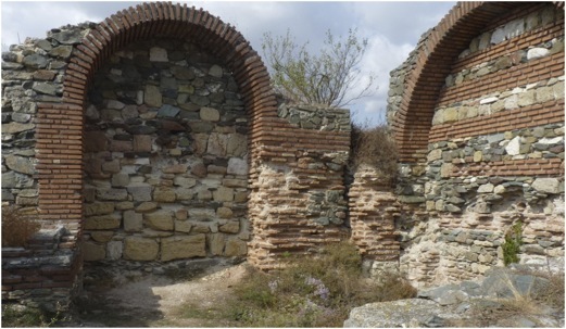 O significado do Cristianismo em Histria é documentado pelos restos da grande basílica, uma das maiores da Dobrudja, com atrium, nartex e naos, construida na primeira metade do século VI em substituição a uma menor, de fins do século IV. No museu, conservam-se fragmentos de igrejas, de capitéis, frontões e altares.