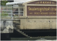 A igreja do Rosário é frequentada sobretudo por cristãos de ascendência chinesa e foram ricos empresários chineses que possibilitaram a construção da monumental catedral da Assunção (Vide https://revista.brasil-europa.eu/135/Universidade-Bangkok.html). Foi entre os chineses - não tanto entre siameses - que os missionários alcançaram sucessos de conversão no passado e, mais longe na história, foram em juncos chineses que os portugueses chegaram ao antigo Sião em 1511 : navegantes e mercadores de ambos os lados e de ambos os lados povos marcados pelas viagens marítimas e pelas águas.