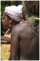 A inserção da expressão na vida da comunidade é sugerida pela presença de mulheres de idade que revelam ocupações femininas realizando trabalhos manuais de cestaria e de trançado sentadas no chão ao lado do terreiro.