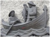No texto: relêvos de pescadores em monumento em Tromso (2012)